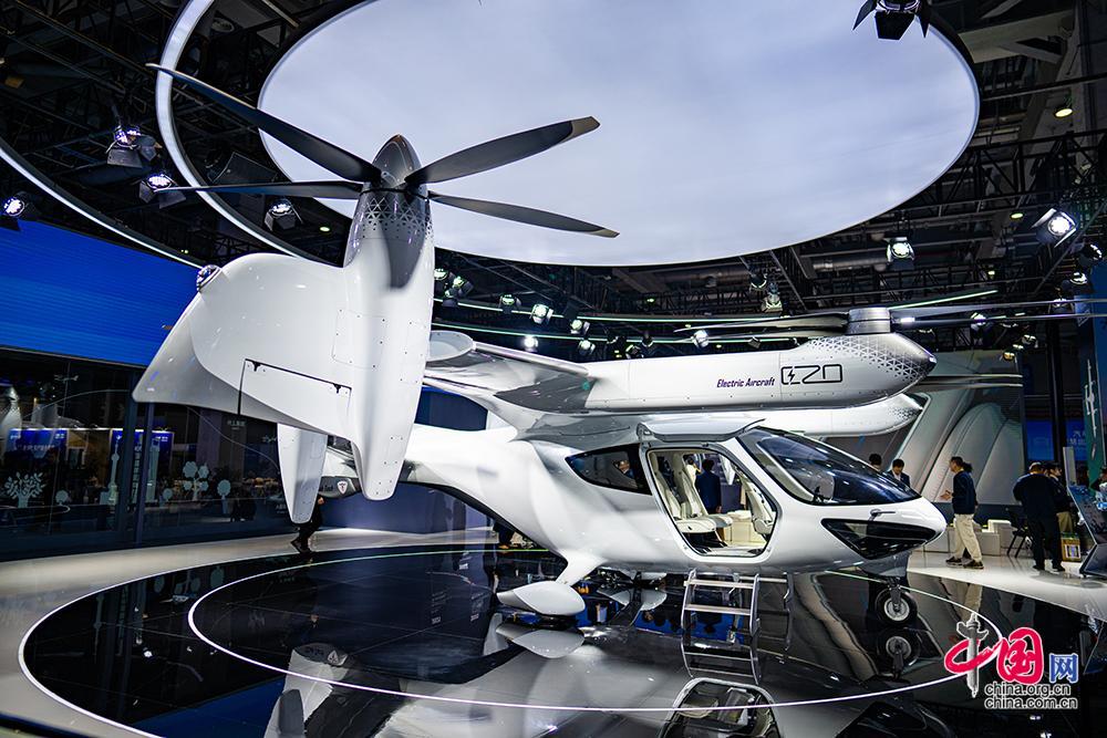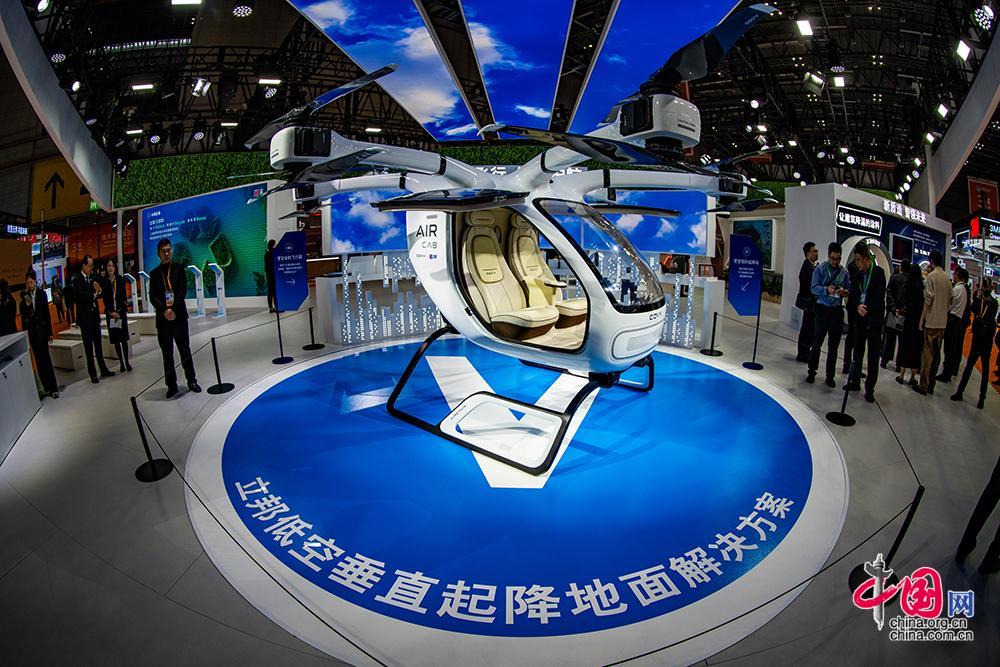 TCAB TECH(时的科技)在进博会上展示了自主研发的倾转旋翼载人电动垂直起降飞行器E20 eVTOL真机。中国网记者 郑亮摄