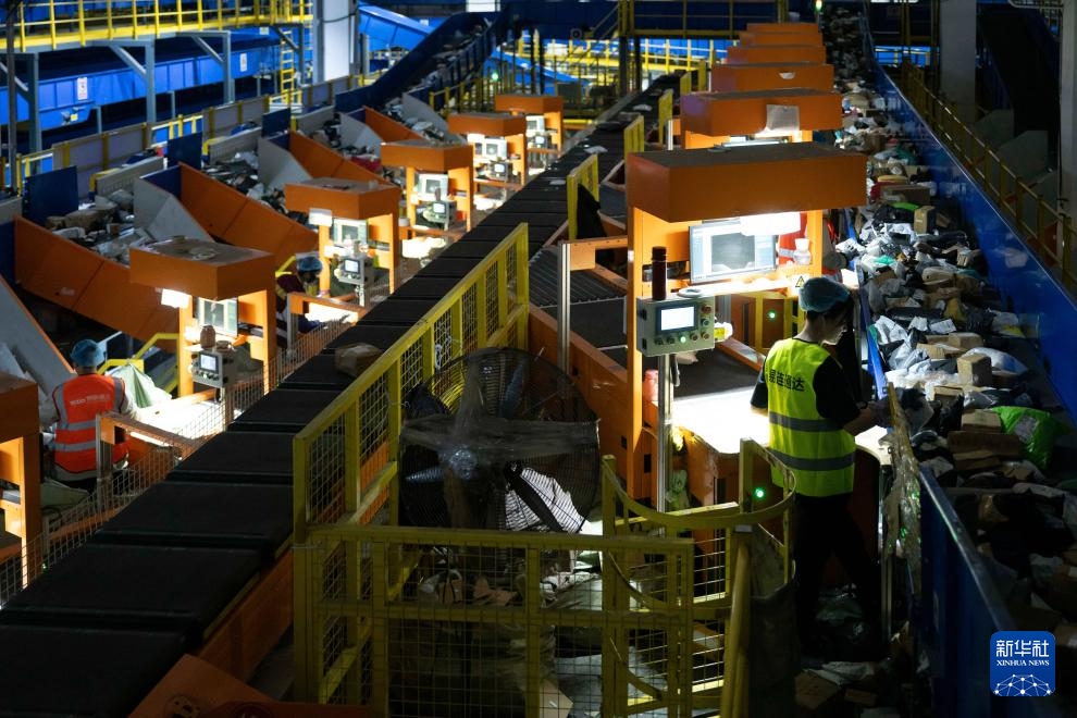11月10日晚,在中国邮政集团有限公司黑龙江省哈尔滨邮区中心,工作人员在分拣快递。