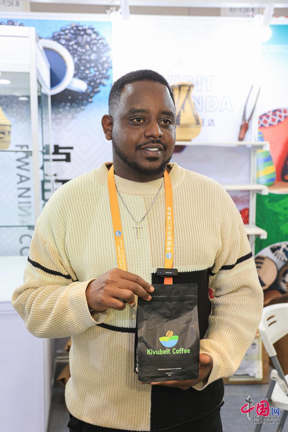 卢旺达咖啡经销商Prince Muramba第二次参加进博会,直观感受到了进博会的活力与魅力。中国网记者伦晓璇 摄