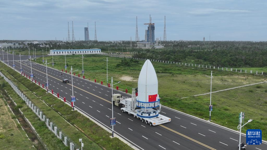 11月11日,长八甲遥五火箭箭体被运出测试厂房(无人机照片)。
