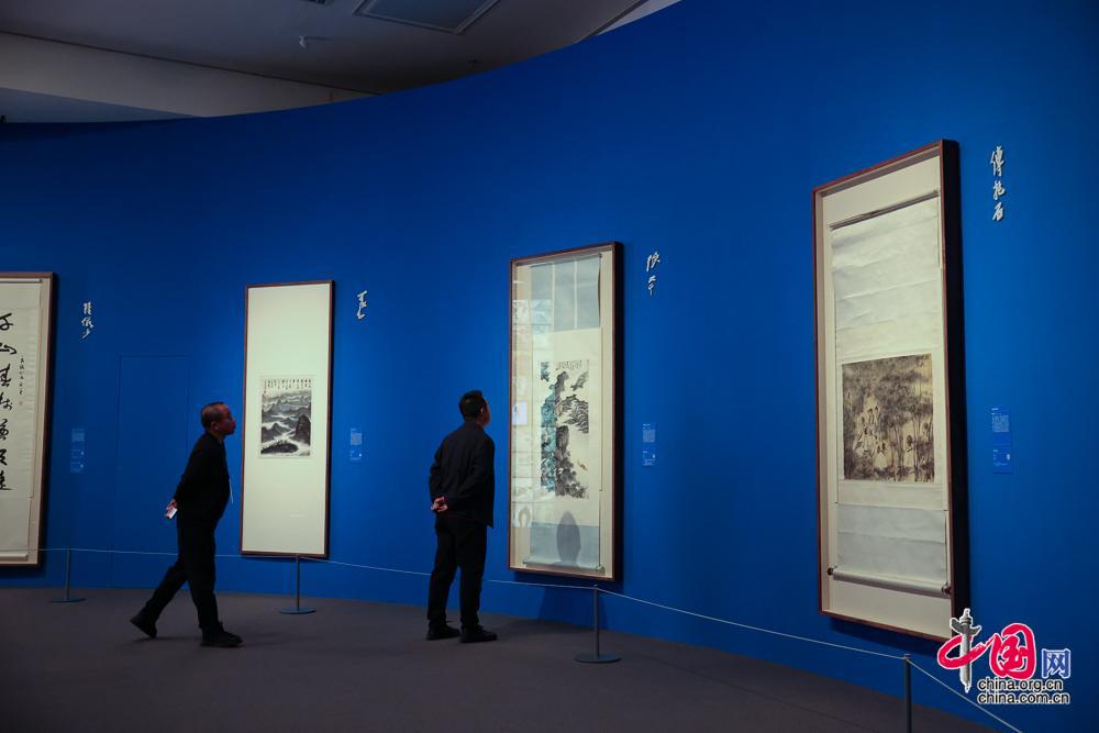 11月11日晚,“马栏山新媒体之夜”活动现场,观众在《群星闪耀时》馆藏展欣赏艺术作品。展览集中展出齐白石、徐悲鸿等十位大师 40 件套精品,以多元展陈方式打造沉浸式体验。中国网记者 董宁 摄影