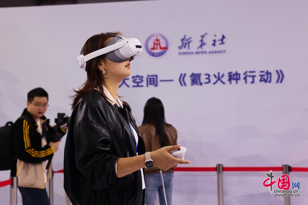 11月12日,观众在2025中国新媒体技术展上体验VR眼镜。中国网记者 董宁 摄影