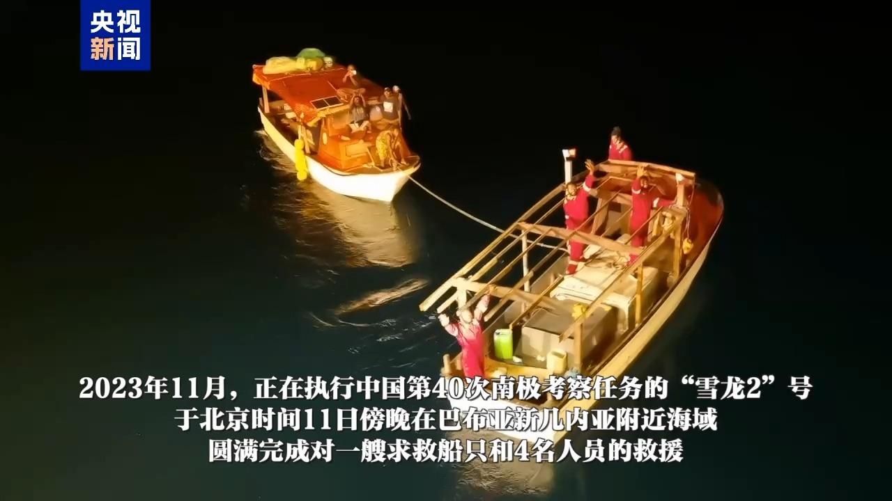 2023年11月10日10时55分许,执行中国第40次南极考察的“雪龙2”号,在巴布亚新几内亚附近海域发现有人挥衣求救。“雪龙2”号立即减速停船,于13时40分靠上并固定求救小船。经沟通得知,船上4名当地渔民因燃油、电量耗尽,已漂泊近9小时。考察队为他们提供食物、补充柴油并充电,却未能启动渔船。因拖运风险大,“雪龙2”号原地陪伴并协调多方。后因当地救援船无法抵达,考察队决定转移渔民与船只,并在11日傍晚成功移交当地接应船只。