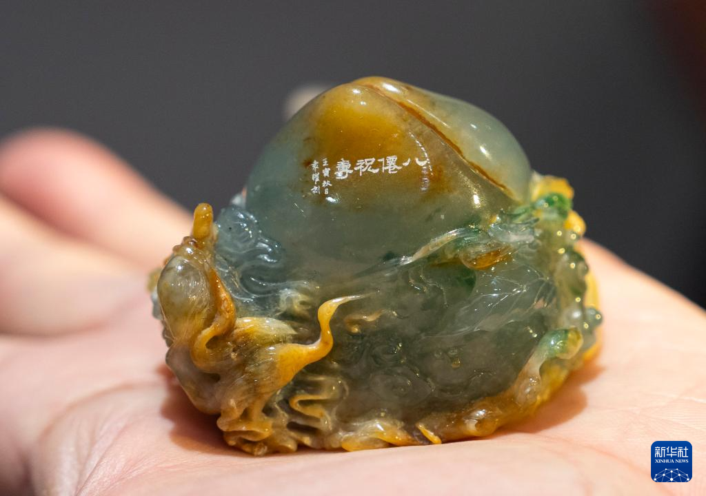 这是11月21日在北京故宫文创融合馆举行的“海派匠心·艺韵共融”上海市残疾人文化艺术作品展上拍摄的“八仙祝寿”玉雕作品。