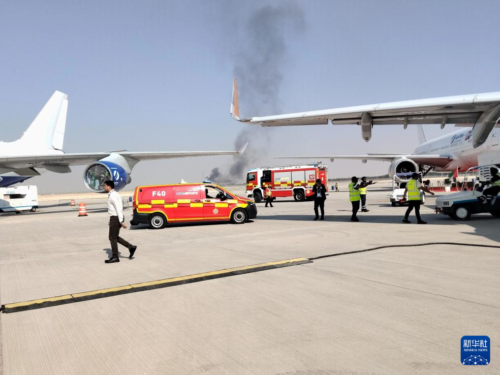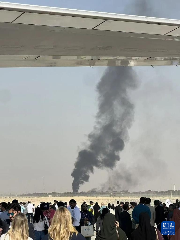 11月21日,在阿联酋迪拜,飞机坠毁现场冒出滚滚浓烟。