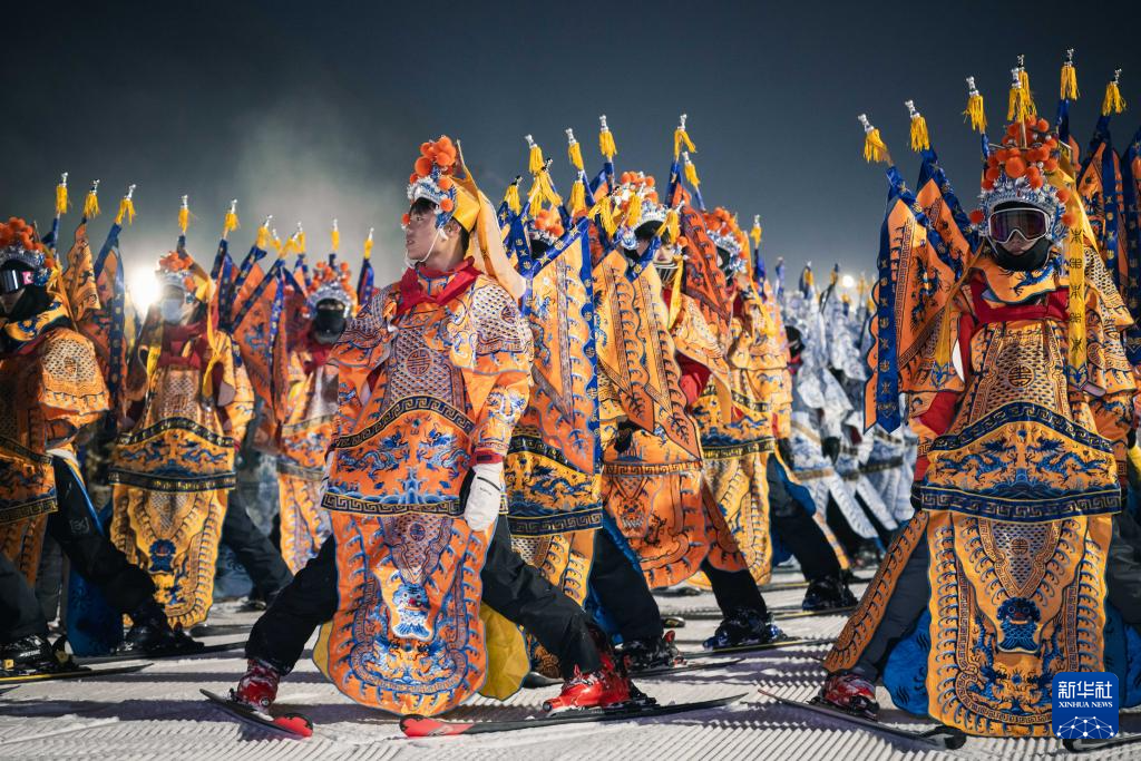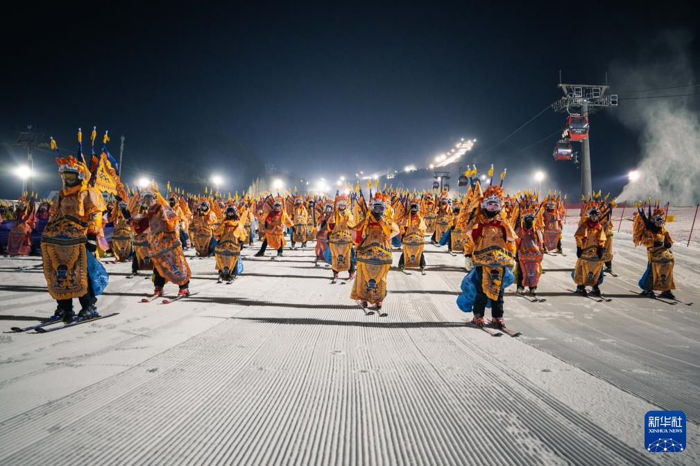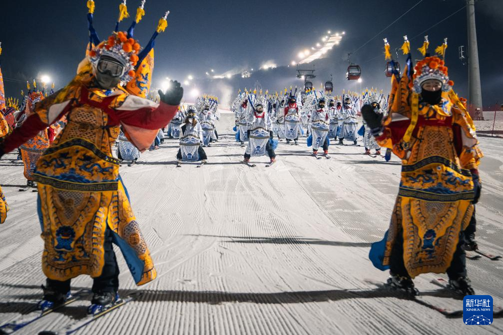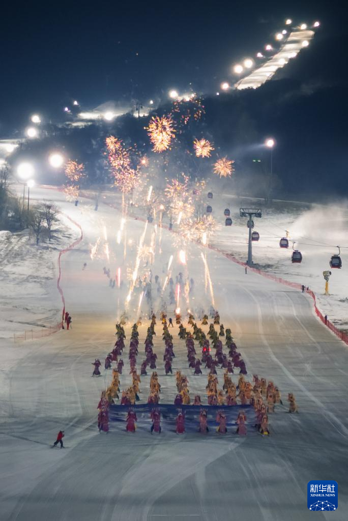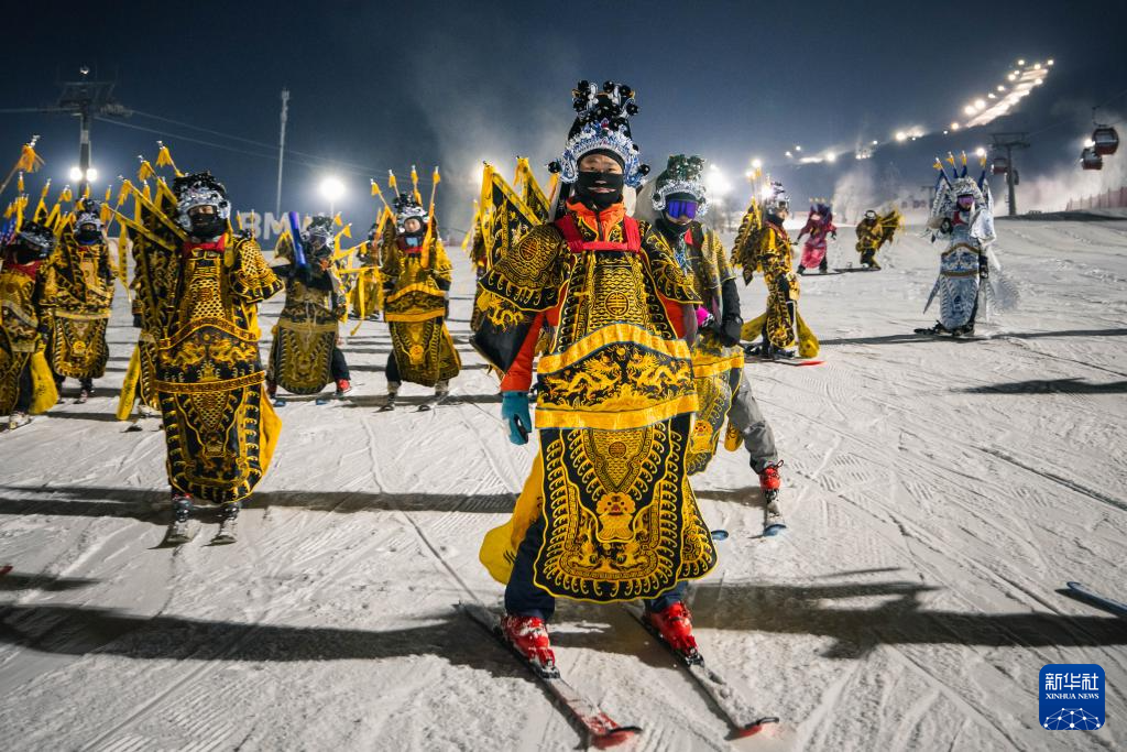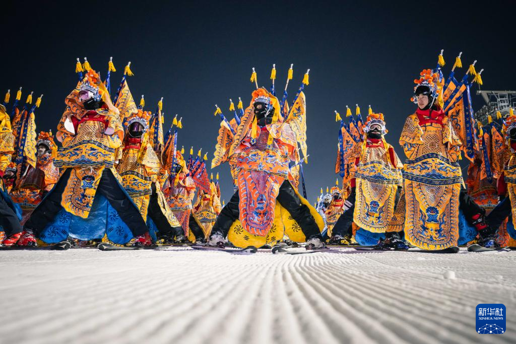 11月21晚,在位于吉林省吉林市的中旅松花湖度假区,260余位滑雪者身着京剧服饰进行主题滑雪秀,将国粹艺术与冰雪运动融合,以一场古今碰撞的视觉盛宴点燃新雪季的冰雪激情。