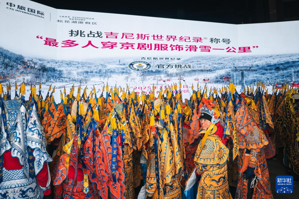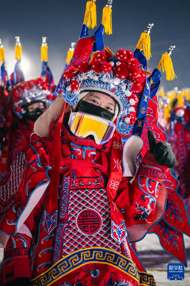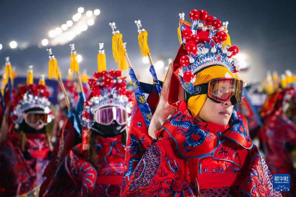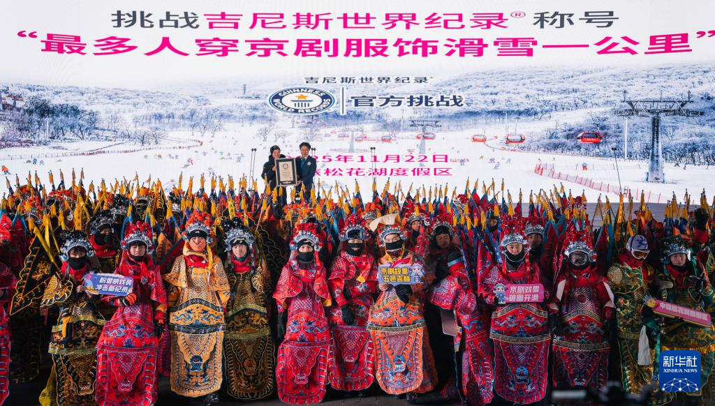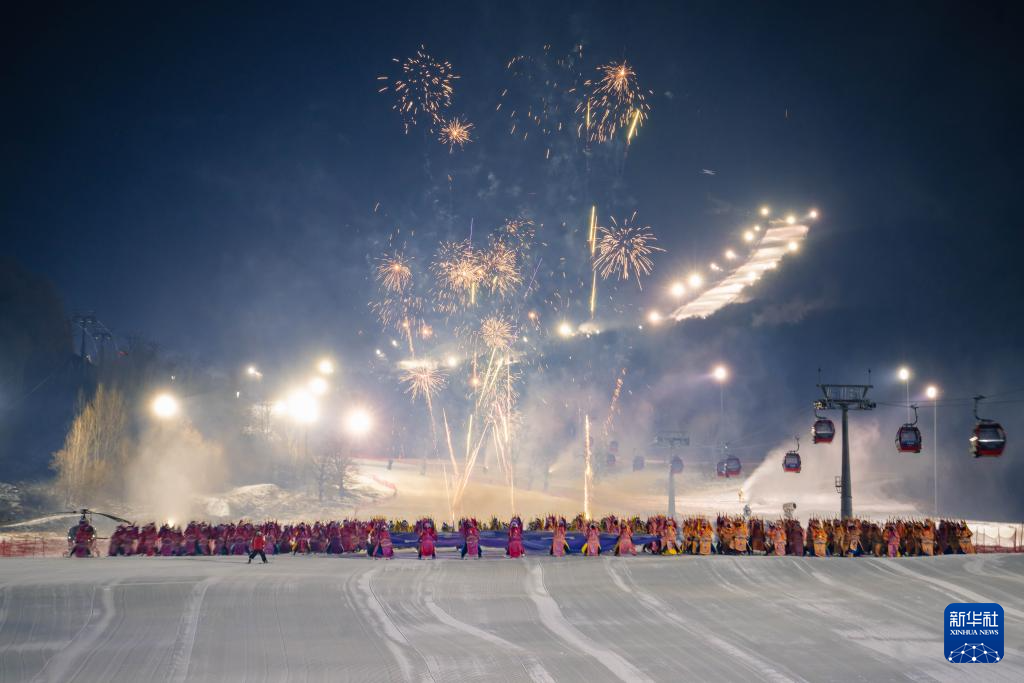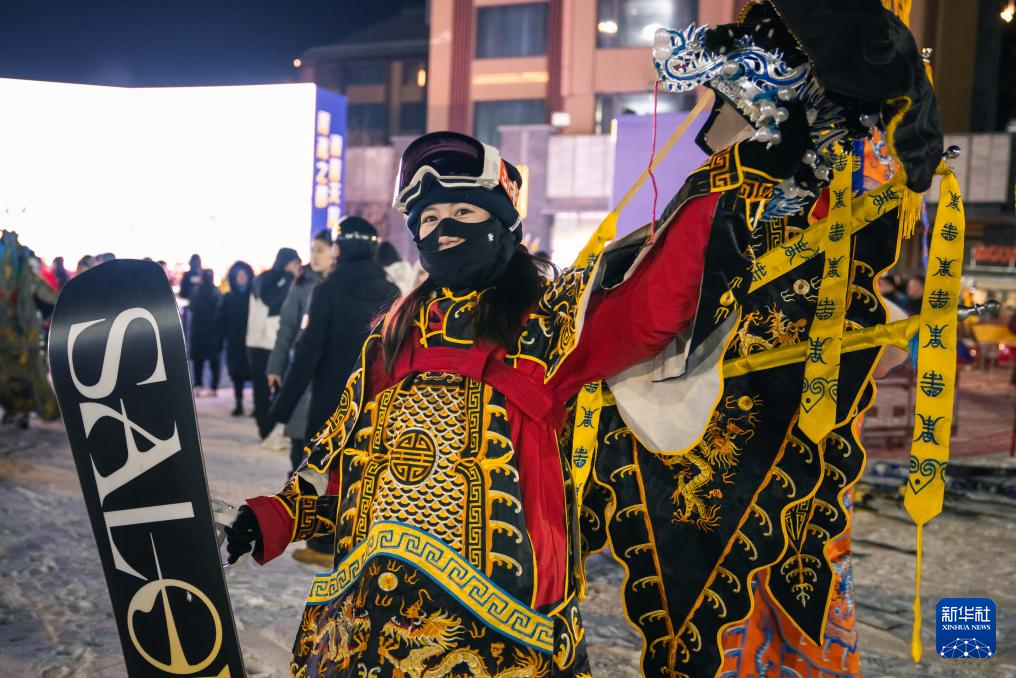 11月21晚,在位于吉林省吉林市的中旅松花湖度假区,260余位滑雪者身着京剧服饰进行主题滑雪秀,将国粹艺术与冰雪运动融合,以一场古今碰撞的视觉盛宴点燃新雪季的冰雪激情。