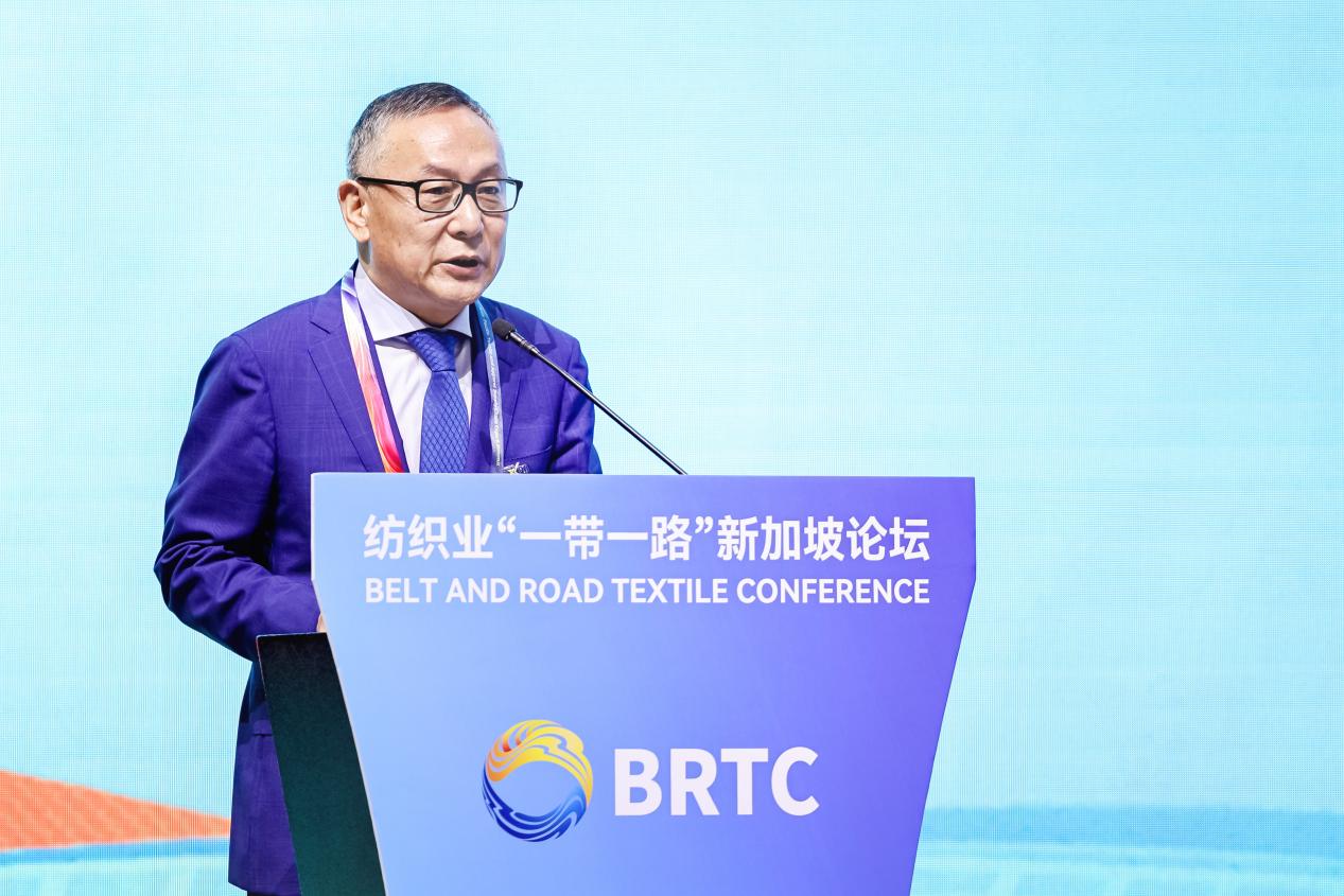 中国纺织工业联合会会长孙瑞哲以“高质量共建‘一带一路’共筑全球产业协同融合新未来”为题,发表了主旨演讲。