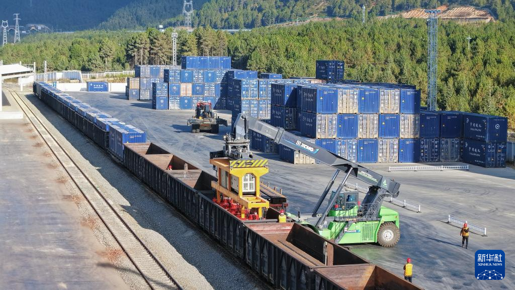 这是11月21日拍摄的云南迪庆藏族自治州小中甸站货场(无人机照片)。