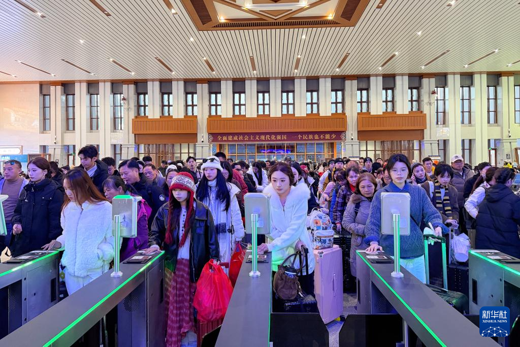 11月20日,旅客在云南香格里拉站通过检票口乘车。