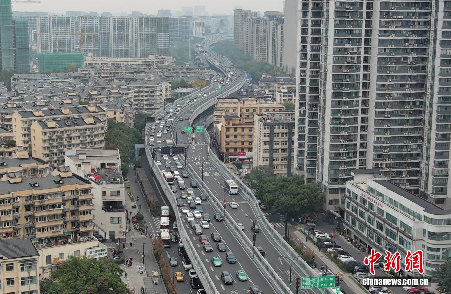 11月24日,秋石高架转复兴大桥方向出现密集车流。当日,是浙江杭州钱江三桥断流改造后的首个工作日,当地复兴大桥、博奥隧道等多个过钱塘江通道承接大量车流,首迎早高峰“大考”。
