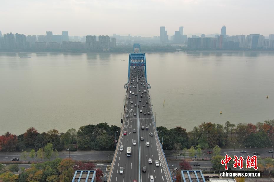 11月24日,航拍改造中的钱江三桥。当日,是浙江杭州钱江三桥断流改造后的首个工作日,当地复兴大桥、博奥隧道等多个过钱塘江通道承接大量车流,首迎早高峰“大考”。
