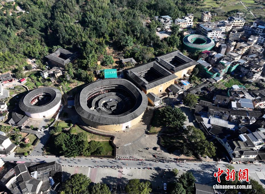 11月23日,航拍“福建土楼王”承启楼。福建永定是著名的土楼之乡,永定土楼在中国传统民居建筑中独树一帜,是客家人在辗转迁徙中,发扬古老生土建筑技术创造的世界建筑奇迹,被誉为“东方古城堡”。承启楼直径达73米,全楼共四圈,有400多个房间。作为福建土楼中规模最大、环数最多的一座,承启楼素有“福建土楼王”的美誉,其造型独特、建筑工艺精湛、建筑质量过硬,在当地现存的两万三千多座土楼中独领风骚。2008年7月,承启楼等福建土楼的重要代表被列入《世界遗产名录》。