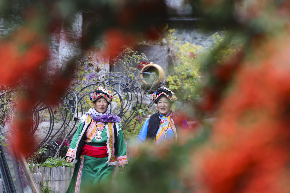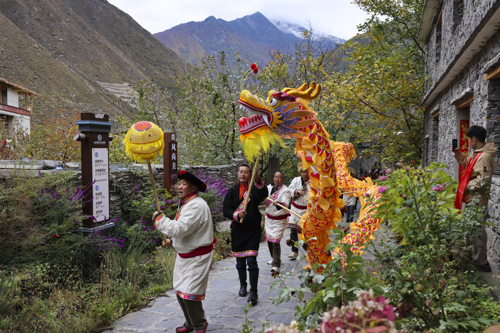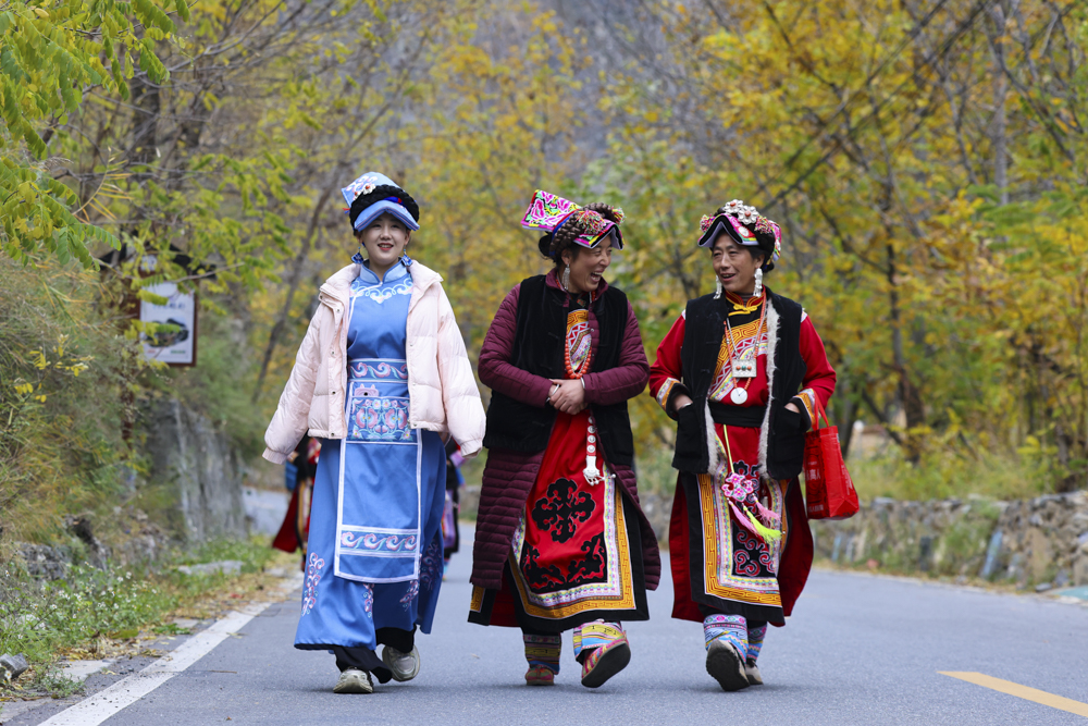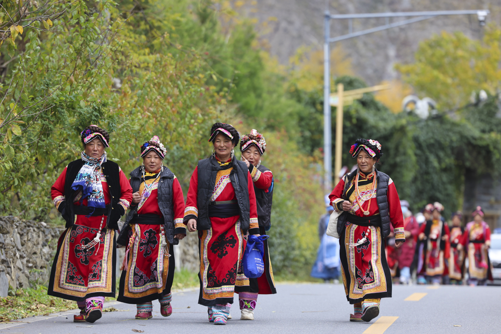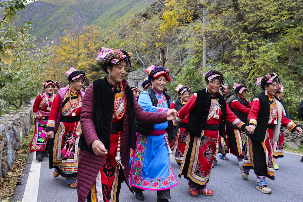 11月18日,第三届赤不苏“日麦喜”民俗文化活动在四川省阿坝州茂县赤不苏镇举行,当地羌族民众载歌载舞,喜迎即将到来的羌历新年。中国网记者 董宁 摄影
