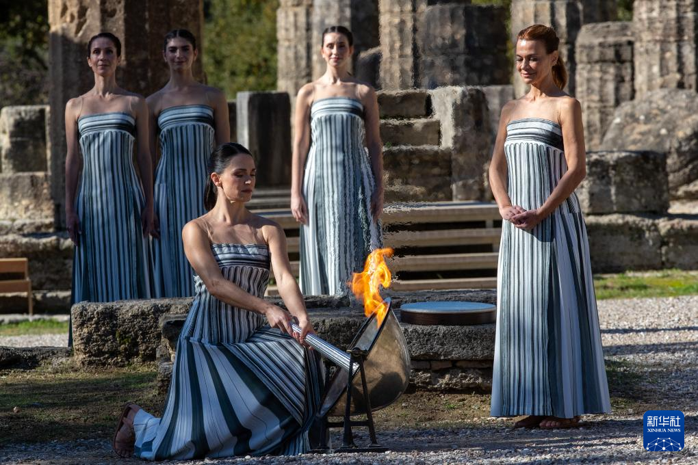 当日,2026年米兰-科尔蒂纳冬奥会圣火火种采集仪式在希腊的奥林匹亚考古博物馆举行。由于预计当天天气条件不佳,火种于24日提前在古奥林匹亚遗址采集。