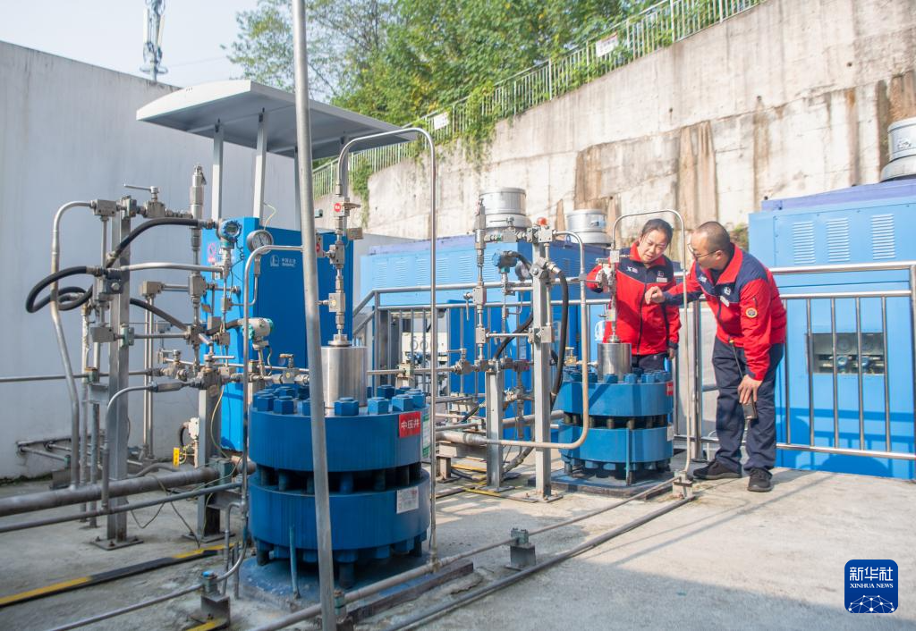 11月26日,工作人员在综合加能站储氢区进行安全检查。