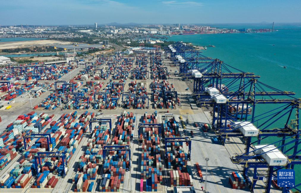 这是11月28日拍摄的洋浦港,是海南自贸港10个“二线口岸”之一(无人机照片)。