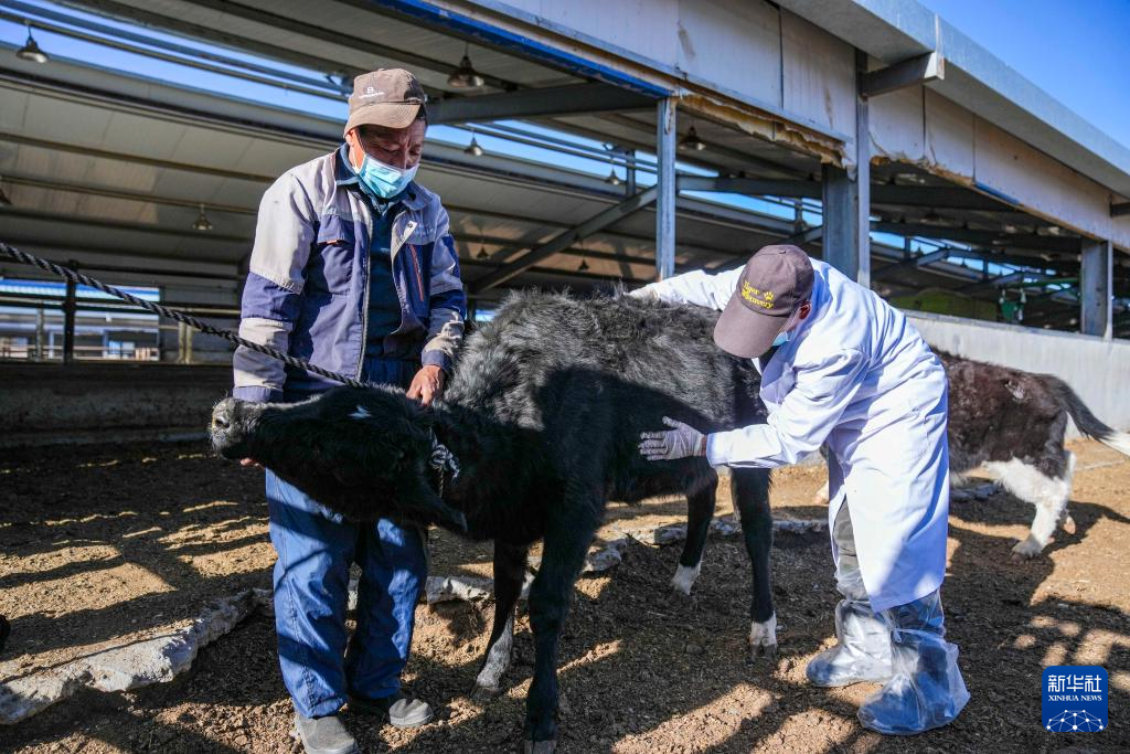 12月3日,西藏自治区动物疫病预防控制中心(区畜牧总站)曲水实验站的工作人员在检查克隆樟木牛母犊的眼睑状况。