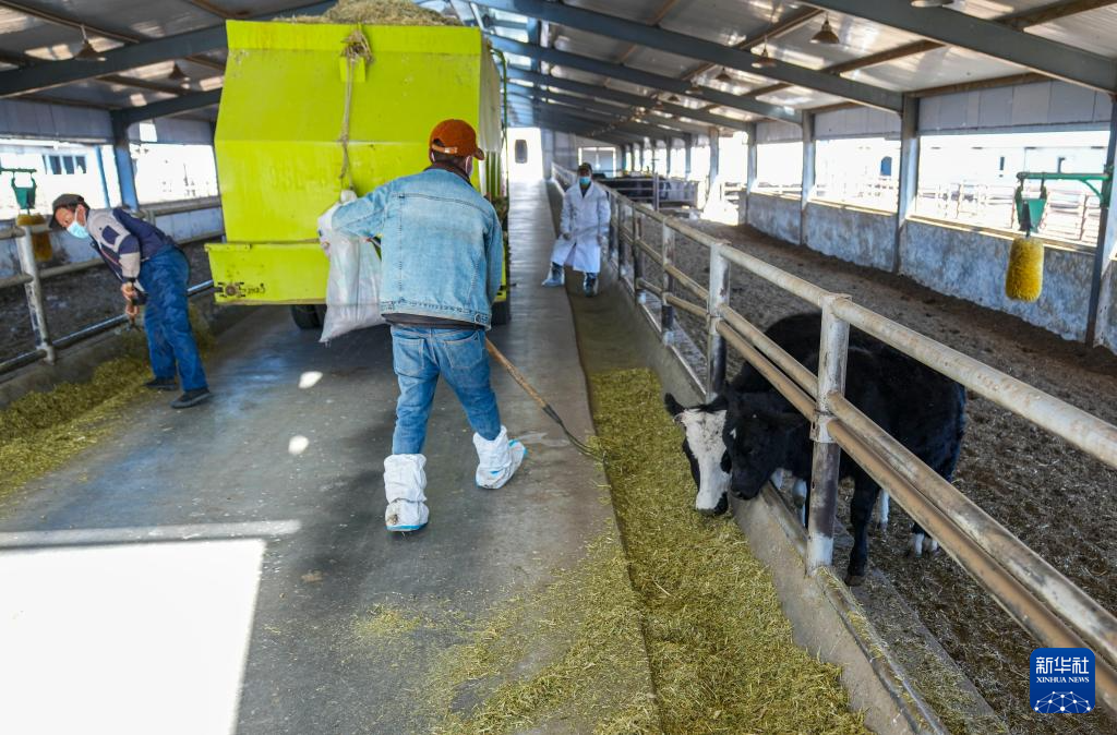 12月3日,西藏自治区动物疫病预防控制中心(区畜牧总站)曲水实验站的工作人员在给克隆樟木牛母犊(右)喂食。