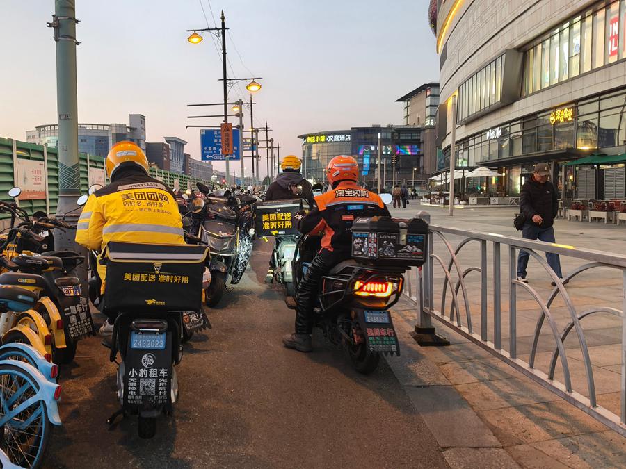 12月15日,外卖小哥正在上海街头工作。新华社记者 方喆 摄