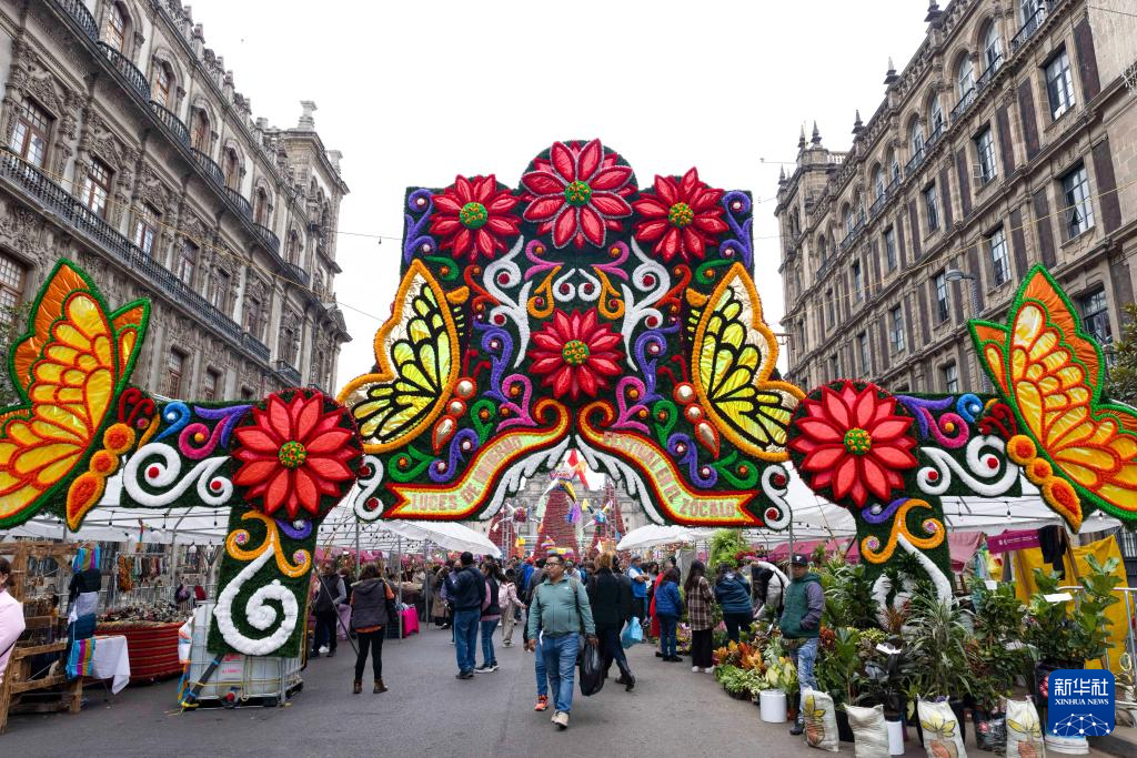 2026年即将到来,墨西哥城多地装点节日装饰,洋溢着新年的喜庆气氛。