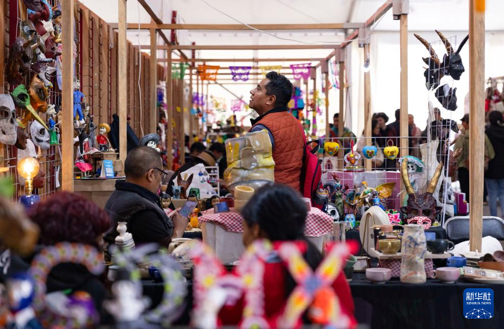 12月30日,在墨西哥首都墨西哥城,人们在手工艺品摊位选购商品。