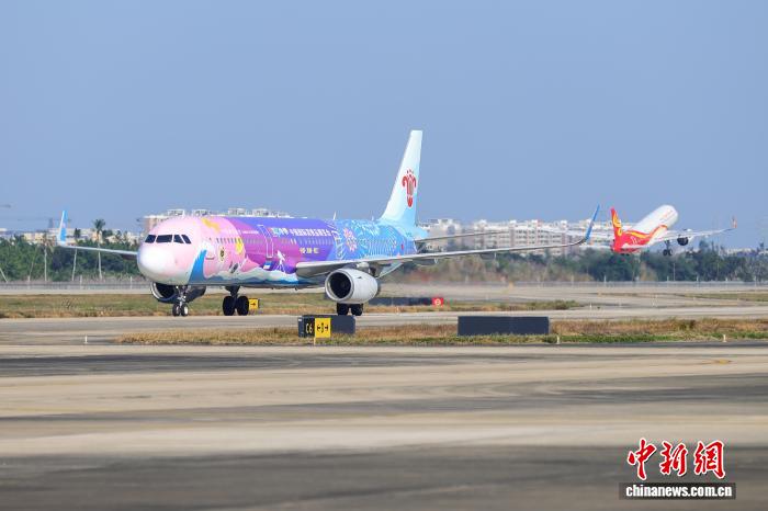 图为南方航空成都至海口航班抵达。中新社记者 骆云飞 摄