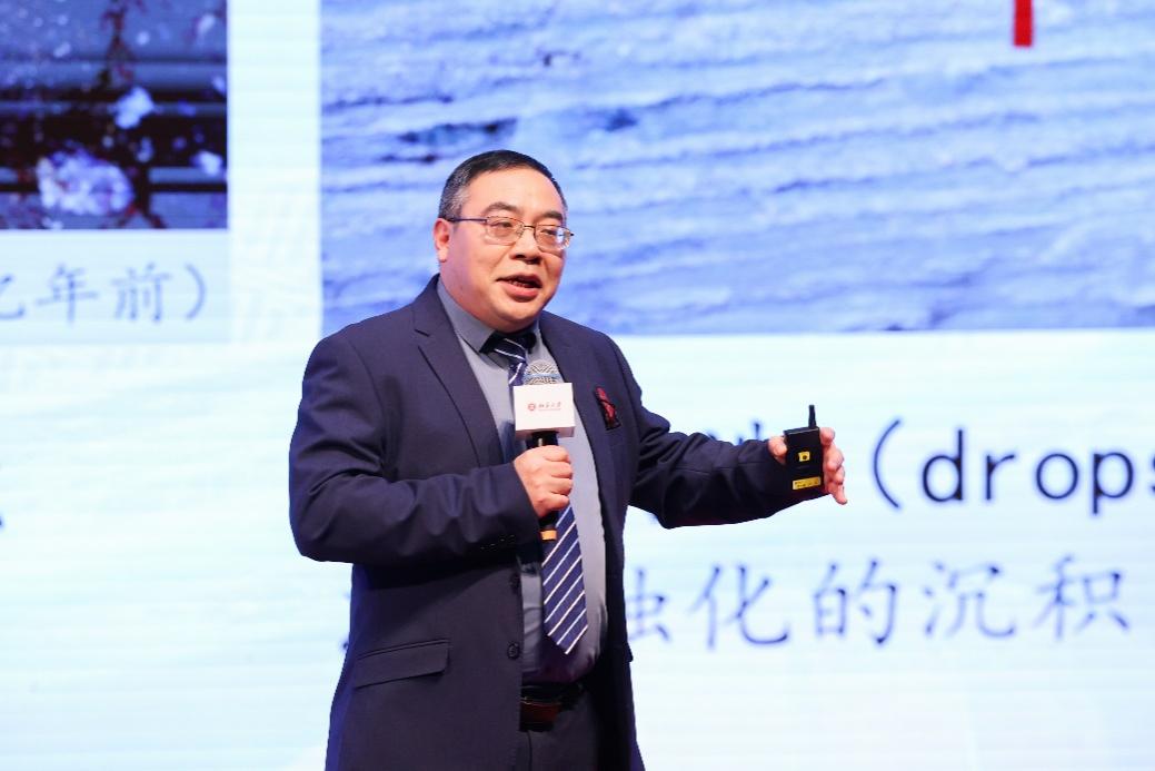 沈冰在题为“揭秘真实的‘流浪地球’”的报告中,探讨了地球历史上全球冰封的谜团。通过分析华南地区的冰川沉积记录,他提出地球曾经历的全球性冰期并非完全冰封,而是处于“冰盖大陆+开放海洋”状态。他指出,维持这种状态的关键在于冰期海洋溶解有机碳(DOC)库的调节作用——火山喷发的CO₂被生物转化为DOC储存在海洋中,从而维持全球冰期的低大气CO₂浓度千万年之久。这一机制为现代碳中和的新路径——海洋负碳排放提供了来自地球历史的证据。