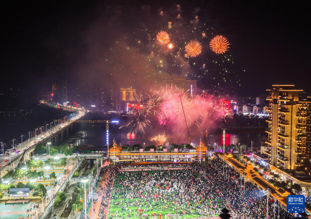 1月2日,人们在活动现场观看烟花表演(无人机照片)。