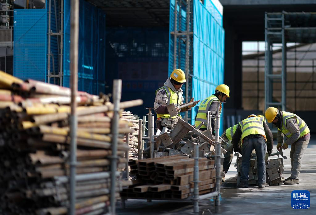 1月2日,工人在位于上海的中建三局一公司灿瑞科技全球芯片研发中心项目工地施工。