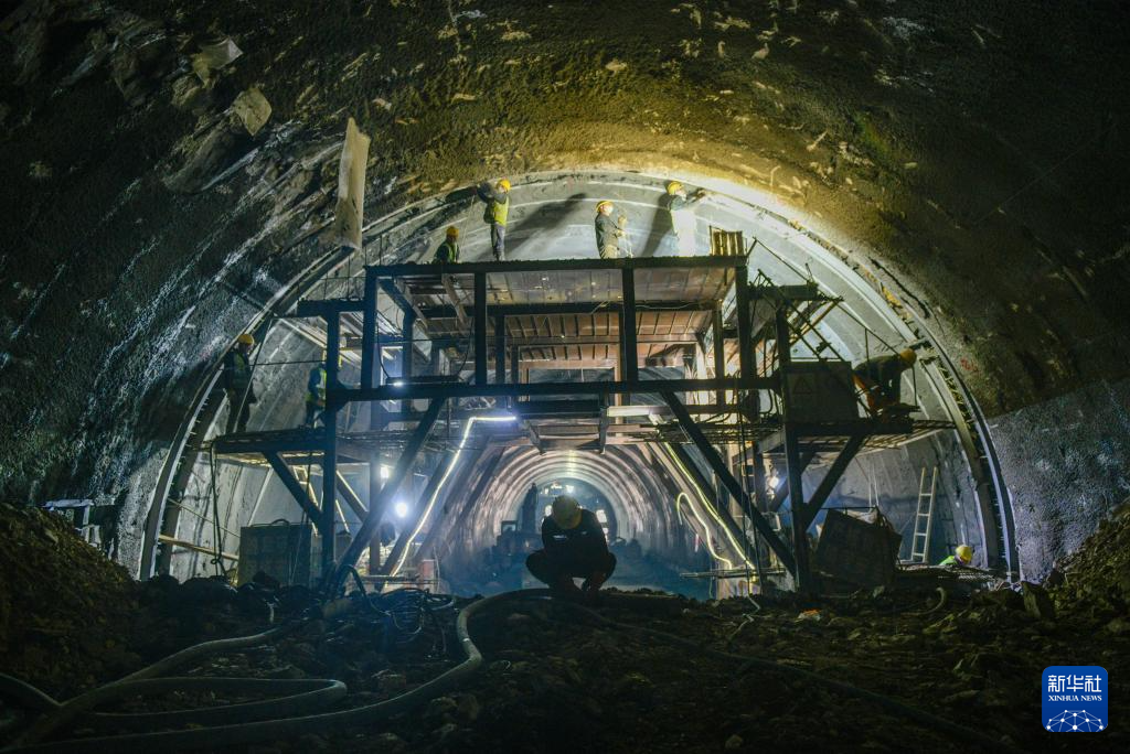 1月2日,工人在湖南省永州市零道高速双丰隧道施工。