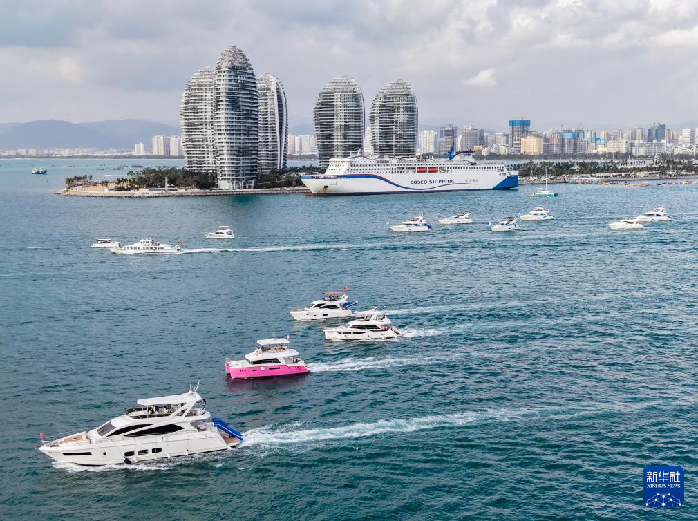 1月1日在海南三亚凤凰岛海域拍摄的出海游艇(无人机照片)。