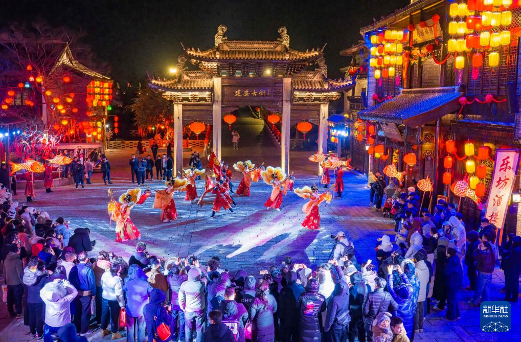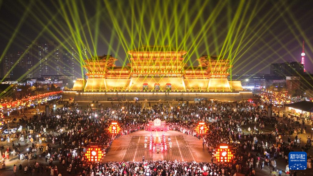 1月1日,游客在河南省洛阳市隋唐洛阳城国家遗址公园内欣赏演出。