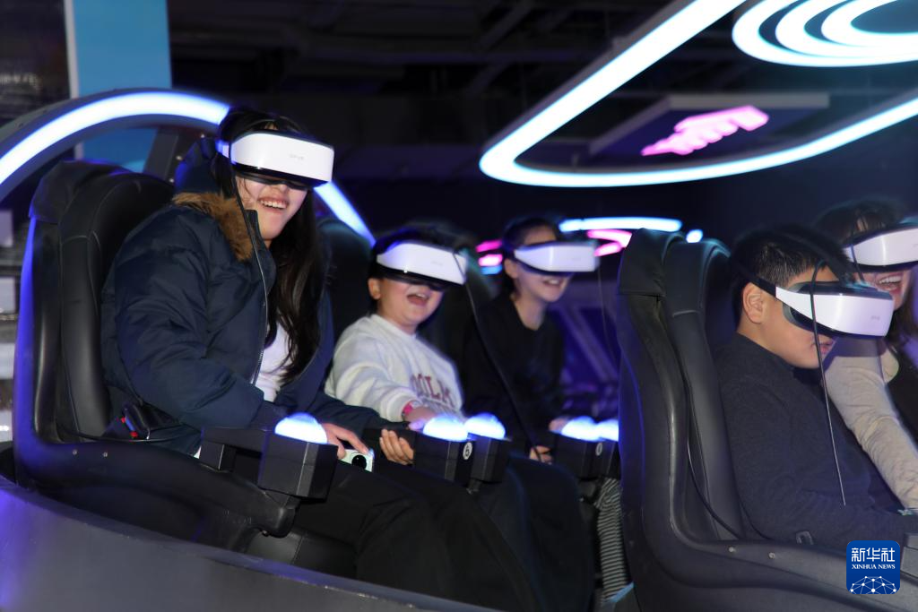 1月2日,在山东省滨州市博兴县一家大型购物中心的游乐场,人们在消费体验游乐项目。