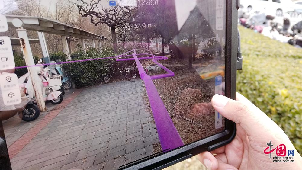 管线增强现实巡检是“一张网”服务的又一项应用。李宁介绍说,“现在我们拥有'一张网'的基准,将后台数据与摄像头捕捉到的现场画面叠加在一起。将虚拟管网模型与实际的道路、土地和建筑场景锚定”。
