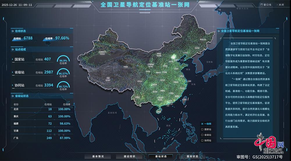 “一张网”基准站状态信息图 图片来源:国家基础地理信息中心