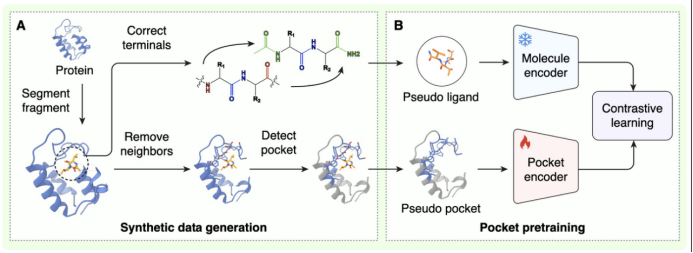 • 自监督结构预训练: 团队创造性地从海量蛋白数据中切取片段模拟“假配体”,构造了多达 550 万组 训练样本。这种策略让 AI 在接触真实药物前,就已深刻领悟了蛋白表面的结构特征,赋予了模型极强的 Zero-shot泛化能力。
