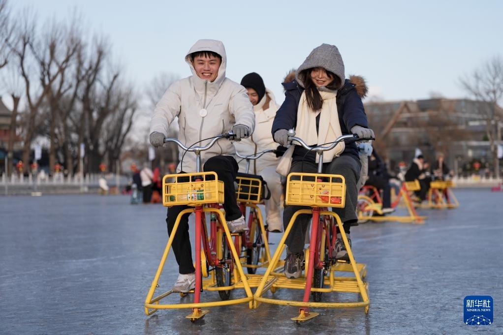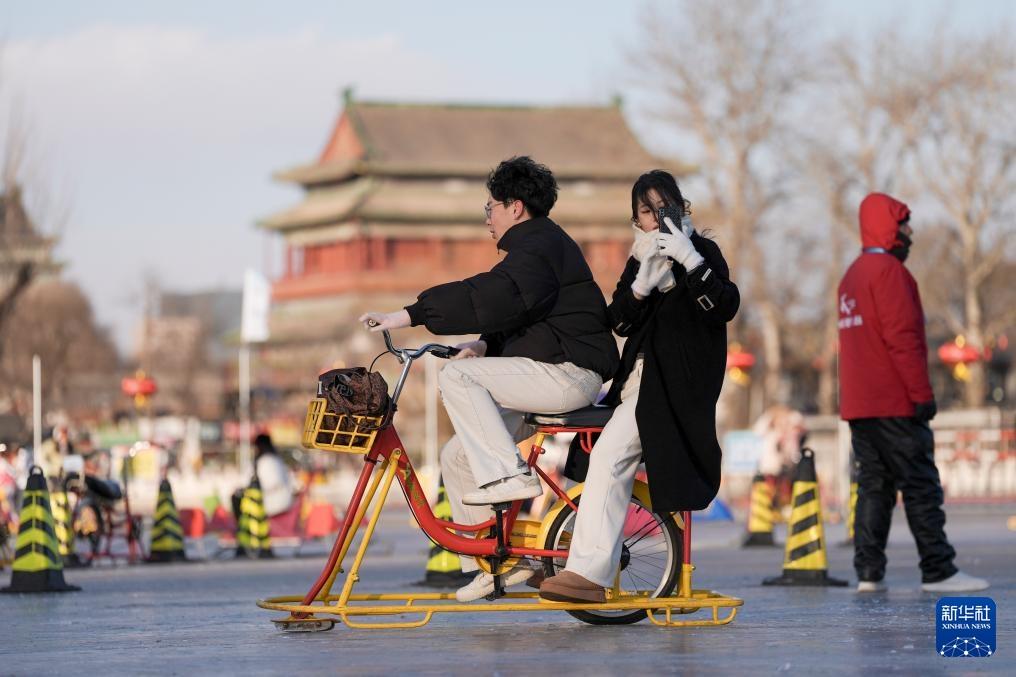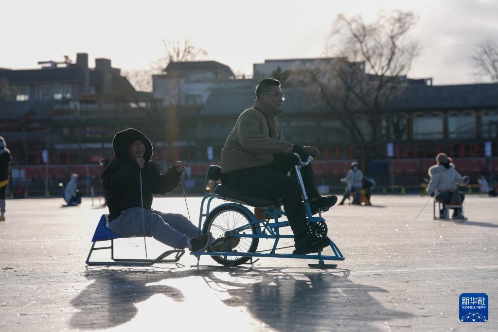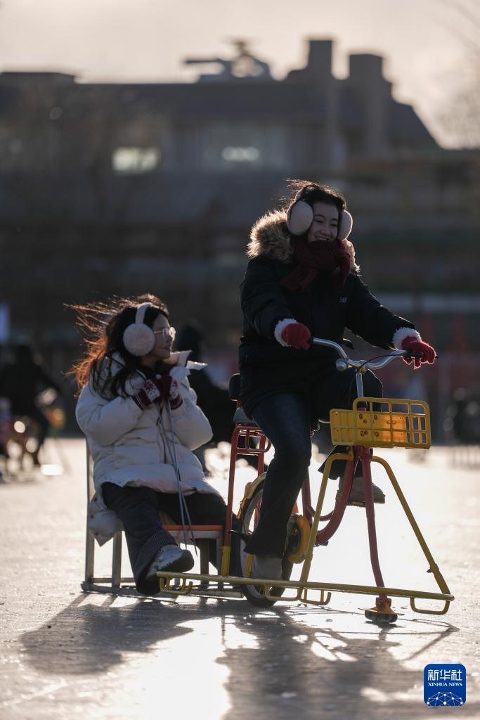 1月10日,北京什刹海前海冰场正式营业,吸引众多游客到此休闲游玩。受气温影响,冰场目前开放的是前海区域。前海冰场运营面积为3.5万平方米,营业时间为8点至21点。