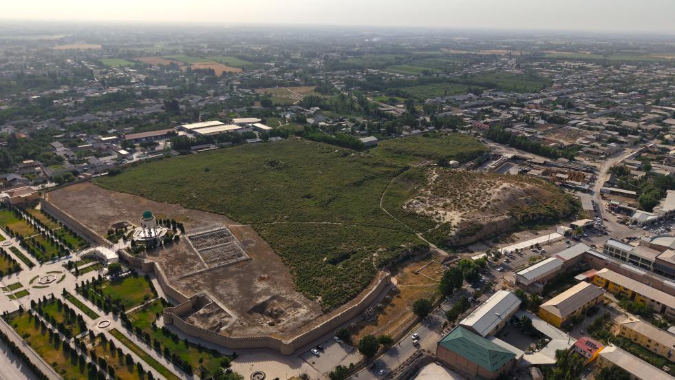 乌兹别克斯坦库瓦古城遗址(2025年6月28日摄,无人机照片)。新华社发