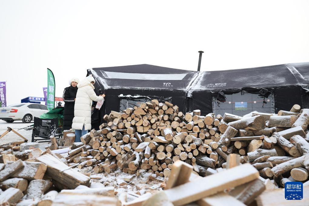 1月12日,在黑龙江齐齐哈尔市举办的第四届东北露营大会现场,露营爱好者搭建帐篷。