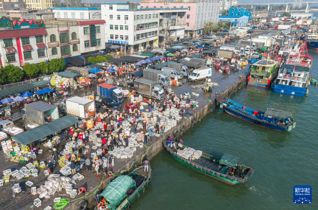 1月13日,海南省文昌市清澜港码头人来车往购销两旺(无人机照片)。