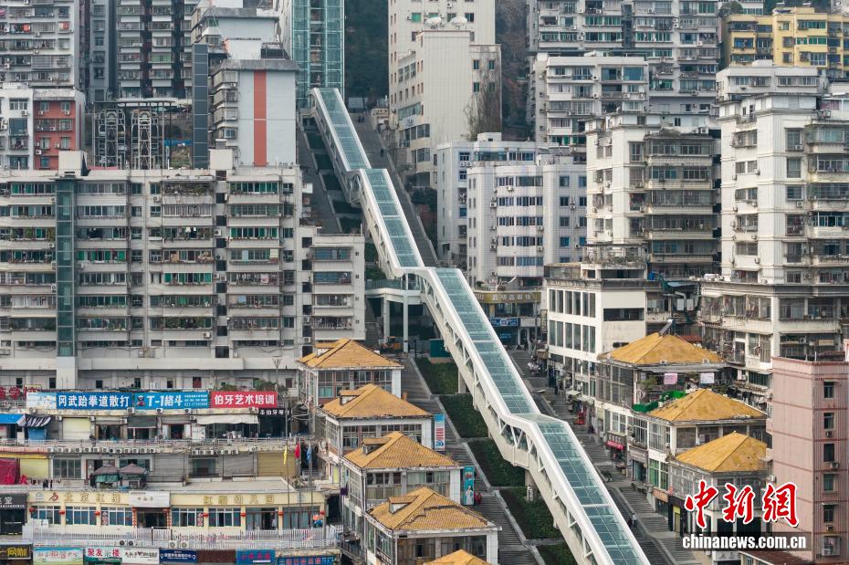 1月14日,重庆巫山,航拍即将建成投用的巫山神女大扶梯。位于重庆市巫山县的神女大扶梯项目,依托神女大道既有纵向城市中轴线建设,是一条利用电扶梯多级提升的城市纵向交通要道,纵向总长度约905米,超越重庆皇冠大扶梯,总提升高度达240余米,相当于80层楼高。项目共设置扶梯21部、电梯8部(含天桥无障碍电梯)、自动人行道4部、人行天桥2座、跨线通道2座。建成投用后,神女大道上下段通行时间将由原来的近1小时缩短至约20分钟,极大便利市民出行和游客观光。