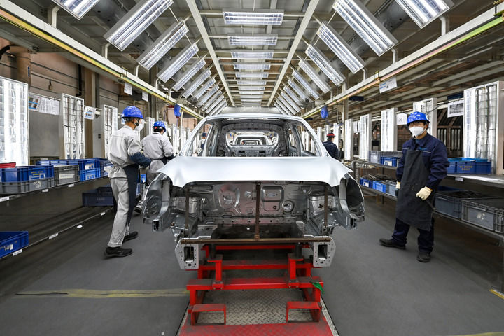 2025年5月13日拍摄的江苏省江都高新技术产业开发区某汽车生产企业的生产线。新华社发(任飞摄)