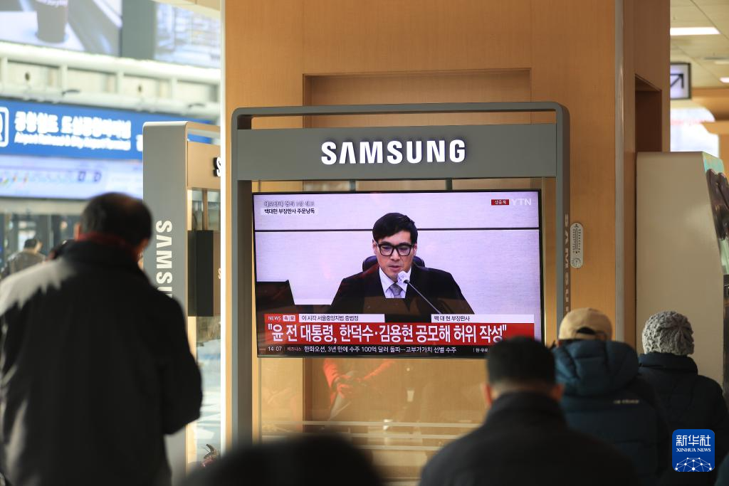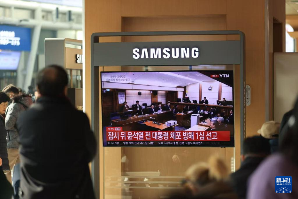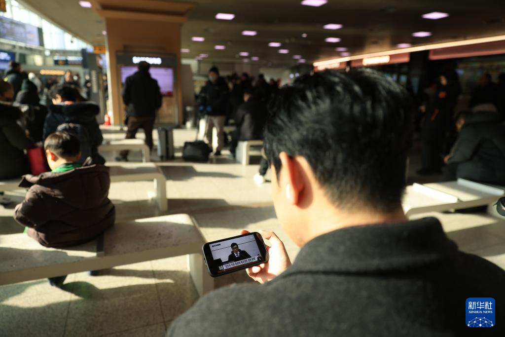 1月16日,在韩国首尔火车站,民众观看尹锡悦的庭审新闻。