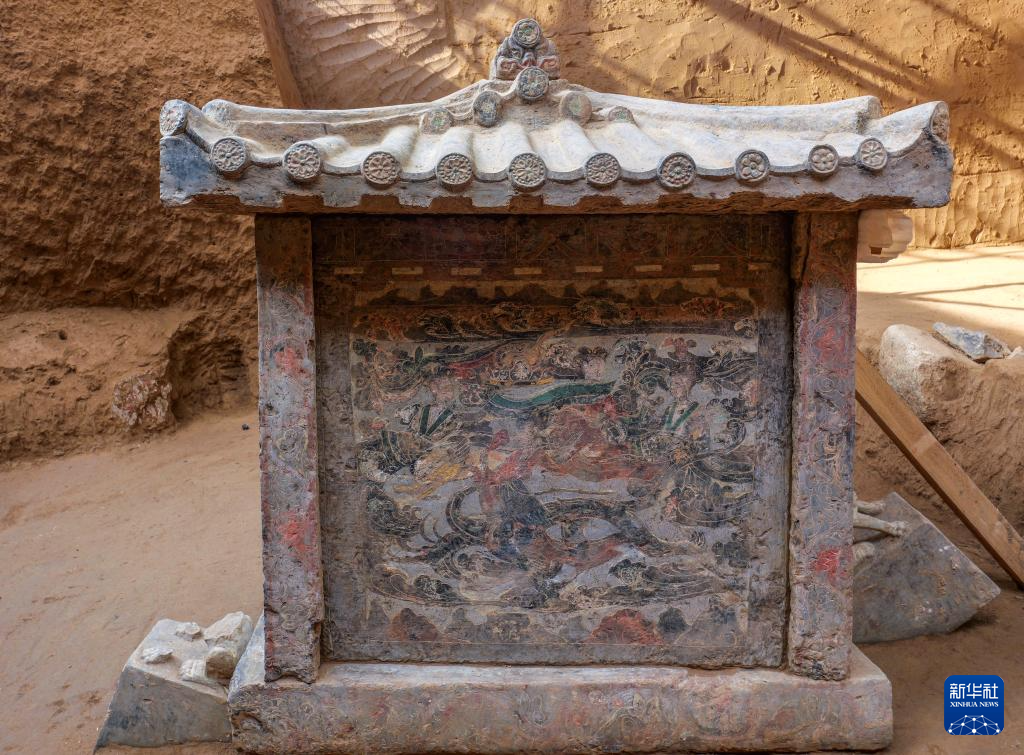这是西安百花村北周成夫人墓出土的房型石椁(资料照片)。
