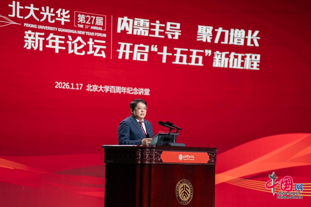 中国网讯(记者 戴凡 杨佳)2026年1月17日,由北京大学光华管理学院主办的第二十七届北大光华新年论坛在北京大学百周年纪念讲堂隆重举行。本届论坛以“内需主导,聚力增长:开启‘十五五’新征程”为主题,紧扣中央经济工作会议“坚持内需主导”的首要重点任务,深度研讨建设强大国内市场的逻辑与路径,为“十五五”规划开局之年注入思想动能。