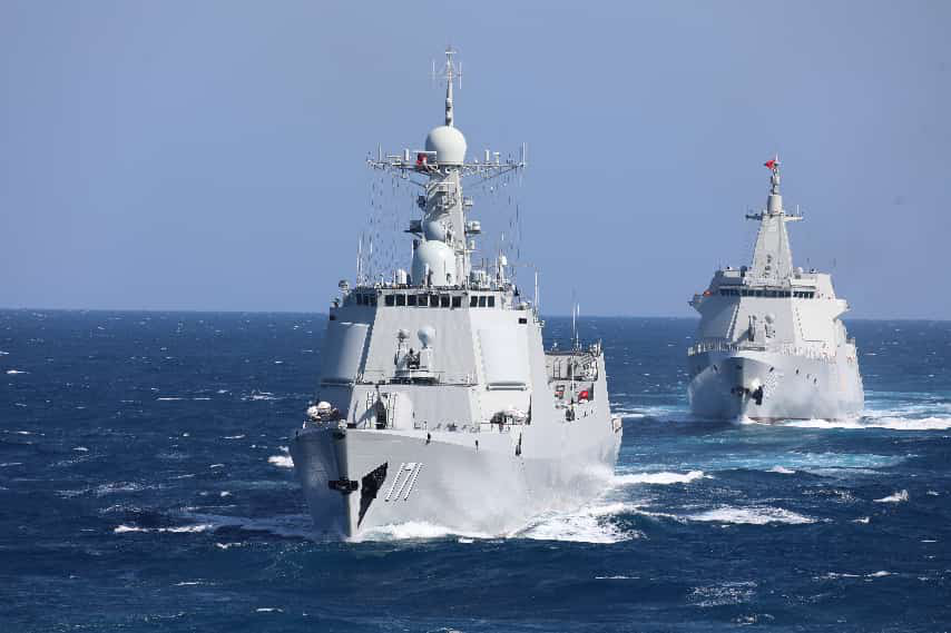 ↑舰艇编队在南海某海域开展多科目实战化训练现场。杨云翔 摄