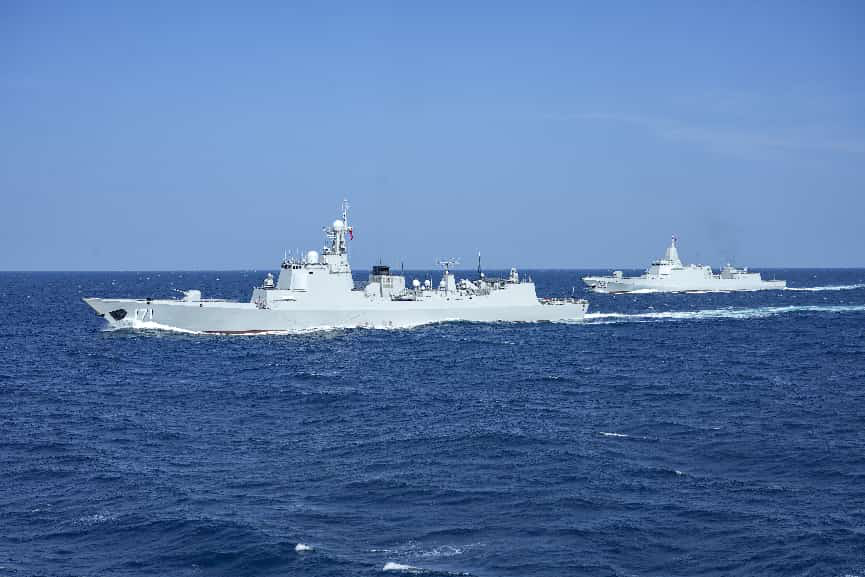 由海军大连舰、昆明舰、银川舰、海口舰等多艘主战舰艇组成的训练编队在大洋深处练协同、练指挥、练装备,检验完善方案预案,进一步提高各级指战员的快速反应能力。
