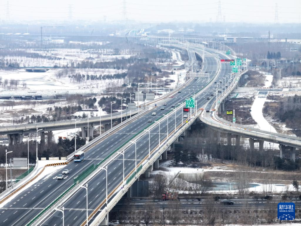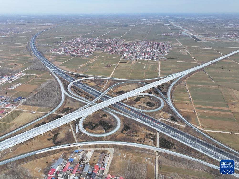 这是1月18日拍摄的京雄高速泗庄枢纽互通(无人机照片)。
