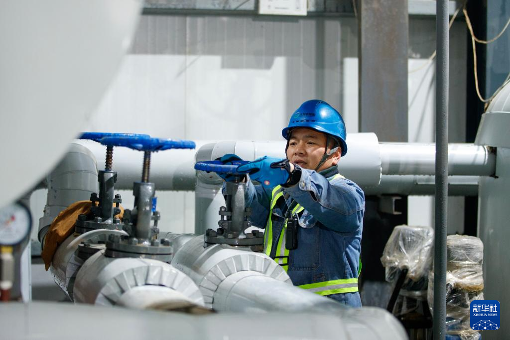 1月18日,热力公司员工在河南省商丘市睢县集中供暖首站对供热设备进行检修维护。